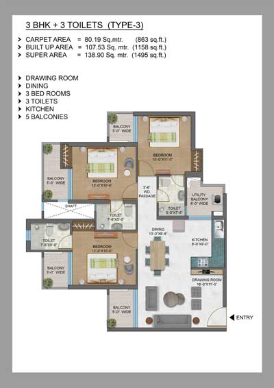 - Electric Connection Charges (Approx.) Rs.75,000/- (1495 sq.ft.) & Rs.1,00,000/- (1715/1780/2420sq.ft) per apartment*.